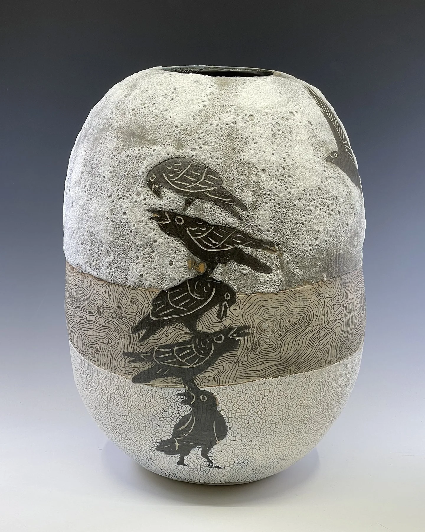 Barbara Prodaniuk is a ceramic artist whose work is inspired by the forest, meadows, and waterways surrounding the Truckee area. She explores the stories carried by the creatures and artifacts found in these environments through layered surfaces, organic textures, and sculpted imagery. Her recent series of work is part of an ongoing dialogue with the natural world and illustrates how closely we are woven into the tapestry of the land and creatures around us.